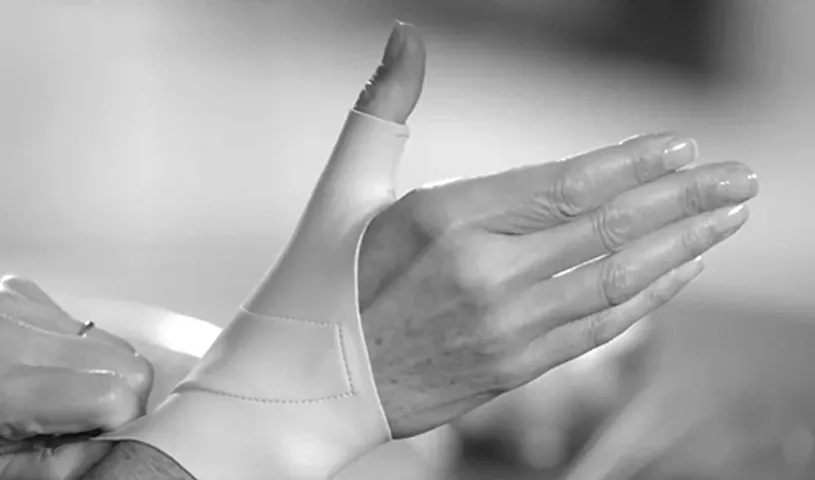 ¡VERDADERO y FALSO! Es cierto que se recomienda inmovilizar el pulgar en posición de reposo de día, pero la mayor parte del tiempo, esto no es compatible con una actividad profesional. Por eso, hemos desarrollado una ortesis flexible que permite los gestos de agarre limitando los movimientos de la articulación del pulgar cuando esta no se utiliza voluntariamente.